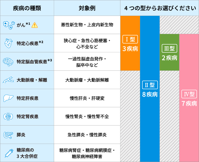 気になる生活習慣病の保障範囲を4つの型から選択可能です。