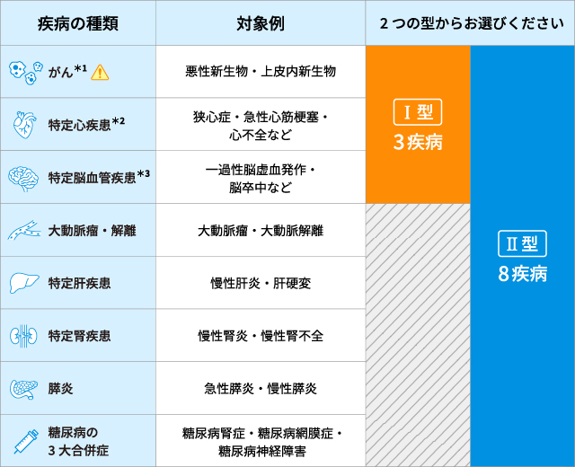 気になる生活習慣病の保障範囲を2つの型から選択可能
