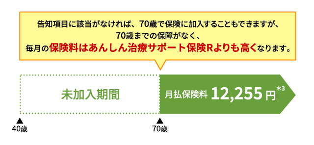 70歳で当社特定疾病治療保険(あんしん治療サポート保険)に加入した場合